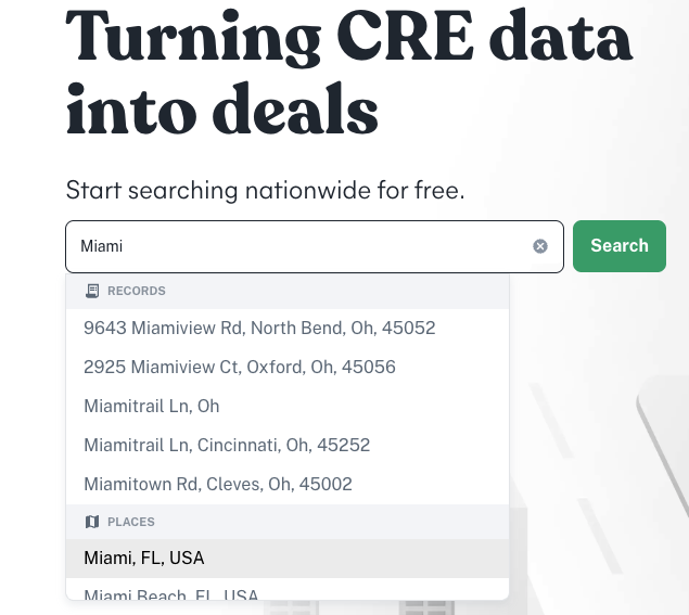 Type your target location into the search bar and select the correct option under "Places" in the dropdown. Add as many locations as you'd like. When you're finished, click Search to apply your selections.