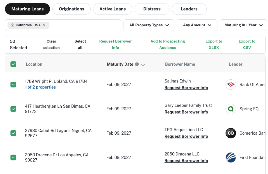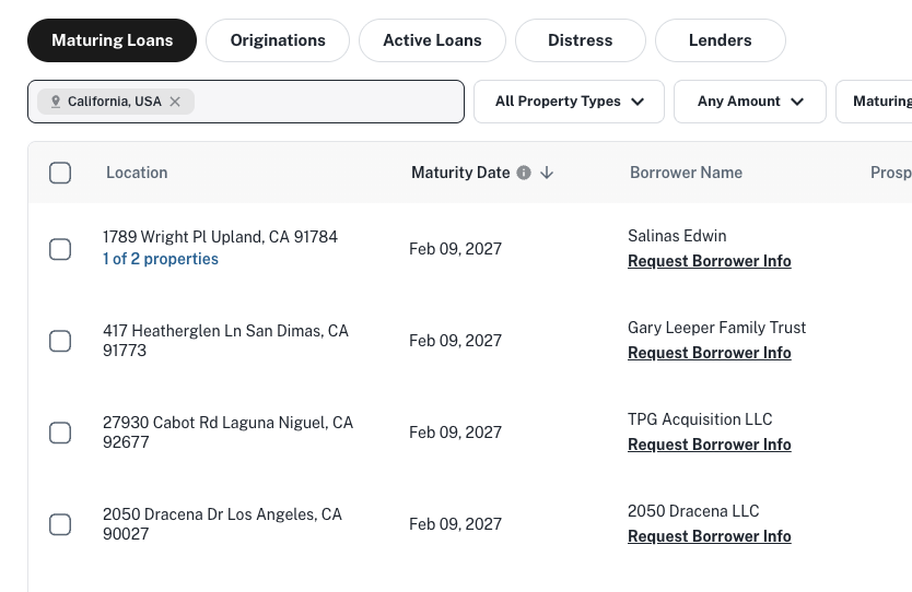 Under Borrower Name, click into any deal and select "Request Borrower Info." This will provide you with the contact information for the owners tied to that property.